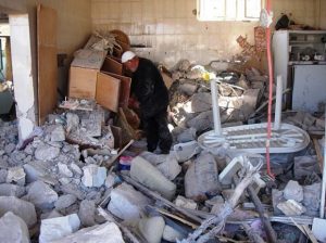 Na mesma manhã de quarta, Ahmad Hijazi, de 84 anos, estava revirando o armário de sua cozinha destruída, em Kabrikha. Na verdade, o armário foi a única coisa que ficou mais ou menos intacta, além da geladeira, na parede oposta: