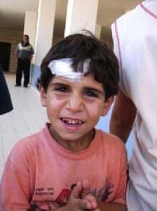 Em Marjeyoun, enquanto entrevistava refugiados na Escola Primária Mihania, em meio aos estrondos e tremores de terra dos mísseis israelenses caindo e dos foguetes do Hezbollah subindo, encontrei um menininho com um curativo na cabeça. Mirei minha câmera, imaginando uma foto triste. Mas o menino abriu um sorriso, encantado porque o homem com quem todos os adultos queriam falar se abaixou para prestar atenção nele. E não deixou que a sua história ficasse triste.