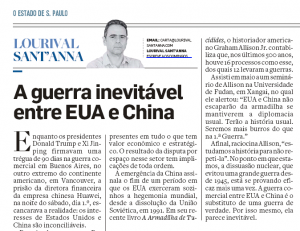 A emergência da China assinala o fim de um período em que os EUA exerceram sozinhos a hegemonia mundial, desde a dissolução da União Soviética, em 1991. Em seu recente livro “A Armadilha de Tucídides”, o historiador americano Graham Allison Jr. contabiliza que, nos últimos 500 anos, houve 16 processos como esse, dos quais 12 levaram a guerras.