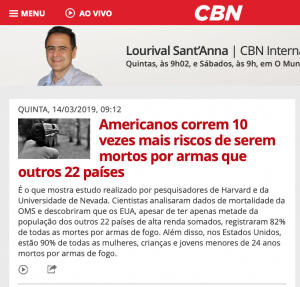 Os americanos correm dez vezes mais risco de serem mortos por arma de fogo do que os cidadãos de outros 22 países ricos. 90% das mulheres, crianças e jovens vítimas de armas de fogo em 23 países ricos são americanos, embora eles sejam metade da população dos outros 22 somados. Os dados são de um estudo feito por pesquisadores de Harvard e da Universidade de Nevada, com base em dados da OMS, publicado no American Journal of Medicine. Ocorre em média quase um incidente com arma de fogo por dia nas escolas americanas.