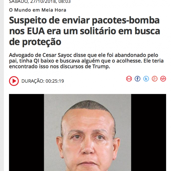 Suspeito de enviar pacotes-bomba foi abandonado pelo pai, era solitário e encontrou em Trump alguém que acha “ok estar com raiva”, diz seu advogado. Em “O Mundo em Meia Hora”, falamos também da recusa da noiva do saudita morto em visitar Trump, da caravana de emigrantes, da saída dos EUA […]